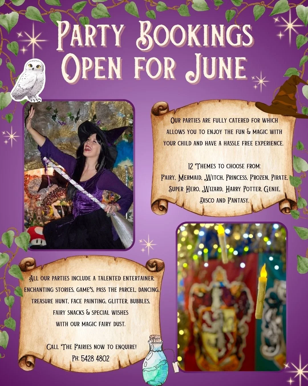 To enquire about dates, times & cost please call the fairies on